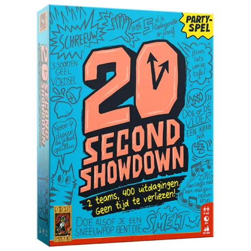 2 teams, 400 uitdagingen. Geen tijd te verliezen! In dit doldwaze partyspel vol belachelijk hilarische uitdagingen probeer je als team zo snel mogelijk opdrachten te vervullen om ervoor te zorgen dat het andere team “geen zand” meer heeft. Het eerste team dat 3 rondes wint, wordt tot 20 Second Showdown-kampioen gekroond.