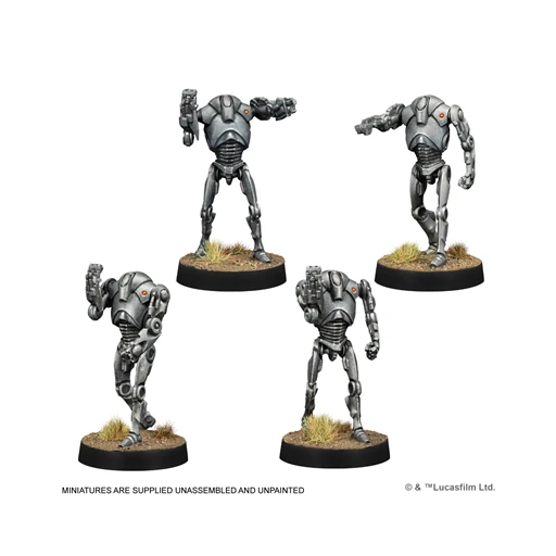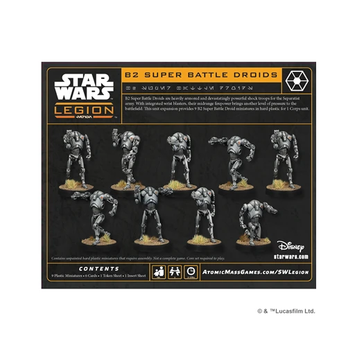 The B2 Super Battle Droids are the powerful shock troops of the Separatist army. Making their debut in Star Wars™: Episode II - Attack of the Clones, these iconic battle droids bring a formidable force to the tabletop in Star Wars™: Legion.