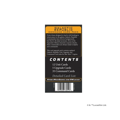 EMBRACE THE STRATEGIC POWER OF THE REPUBLIC: This Galactic Republic Command Card Pack includes 51 updated Unit, Upgrade, and Command cards, designed to enhance your Republic forces with powerful abilities.