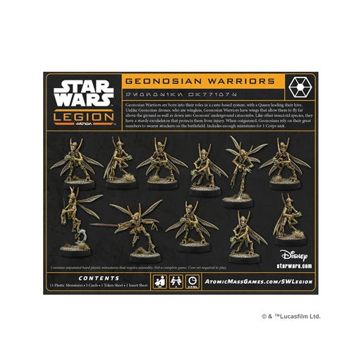 This expansion adds eleven Geonosian Warrior miniatures to players' armies, including a Geonosian Warrior