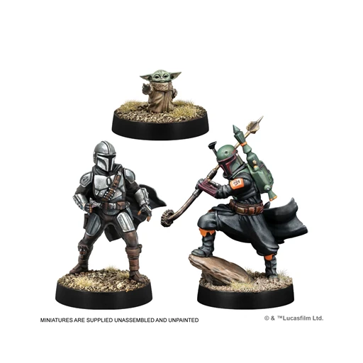 Boba Fett (Daimyo) strikes fear into the hearts of his enemies and ensures no one escapes his grasp. Joined by Din Djarin, known as The Mandalorian, and his counterpart Grogu, a foundling with a strong connection to the Force, this trio of characters brings a wide variety of iconic abilities to the battlefield of Star Wars™: Legion.