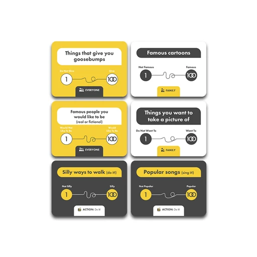De categorieën zijn verdeeld in 3 soorten: Familie, Iedereen en Actie!