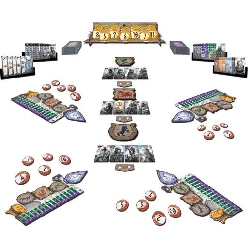 De dwergen van Nidavellir leefden millennia lang in vrede, maar in het wilde en ijzige land van het koninkrijk van Nidavellir blijft er nooit iets voor altijd. Het vergeten kwaad Fafnir, de reusachtige draak, is ontwaakt na grote ruzies in het koninkrijk. De meedogenloze Fafnir is op zoek naar goud en kan die in grote hoeveelheden vinden in het rijk van Nidavellir. Jij bent door de koning gevraagd om de bloeddorstige draak te confronteren en te verslaan. Verzamel je team in de verschillende tavernes en bemachtig de grootste helden van het koninkrijk. Als een eerbiedwaardige dwerg, een gerespecteerd lid van de raad en krijgsleider, ben jij door de koning op pad gestuurd om een leger te vormen dat in staat is om het reusachtige monster Fafnir te verslaan. Verzamel de meest bekwame dwergen in elke taveerne in de stad. Rekruteer de meest prestigieuze helden en bouw het beste bataljon om jullie aartsvijand te verslaan! Zorg er bovenal voor dat je de juiste helden rekruteert, want de koning zal de beste dwerg belonen, maar zal degene die enkel een leger van zwakke zielen heeft verzameld zeker straffen! De Dwergen van Nidavellir is een spel voor 2 tot 5 spelers waar je in het dwergenkoninkrijk het kwaad probeert te verslaan. Verzamel de beste krijgers, vorm een leger en win het spel. Is jouw leger machtig genoeg om de draak te verslaan?