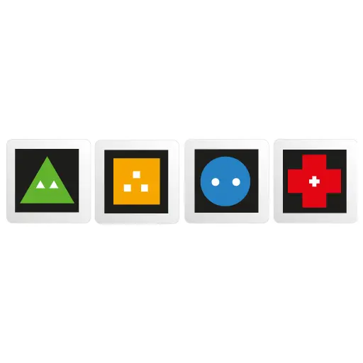 Creëer lijnen van maximaal 4 kaarten, waarbij de kleur, het getal en de vorm telkens óf volledig verschillend óf volledig gelijk moeten zijn!